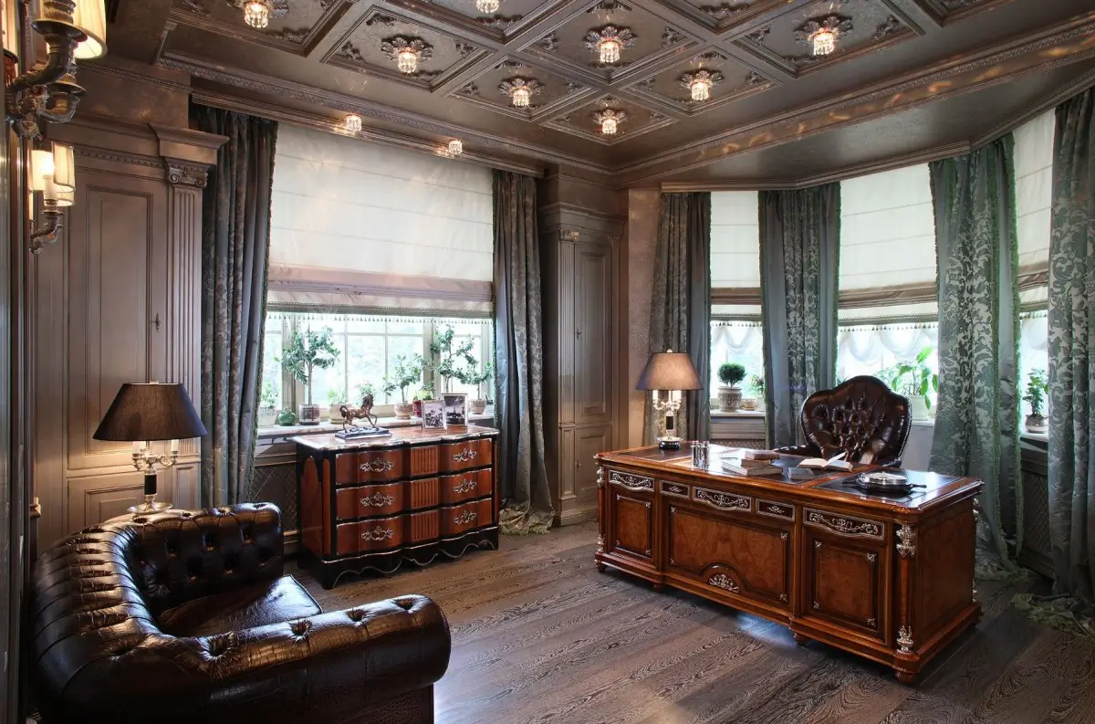 В создании интерьера элитного кабинета наряду с современными технологиями производства часто используется ручная работа, за счет чего он приобретает изысканность, элегантность и эксклюзивность. Богатая цветовая палитра используемых в отделке материалов, практичность, долговечность и их отличные эксплуатационные характеристики позволяют создавать шикарные, благородные и уникальные интерьеры, которые будут отличаться практичностью и функциональностью и радовать хозяина кабинета не один год, став визитной карточкой фирмы и подчеркнув ее высокий статус.