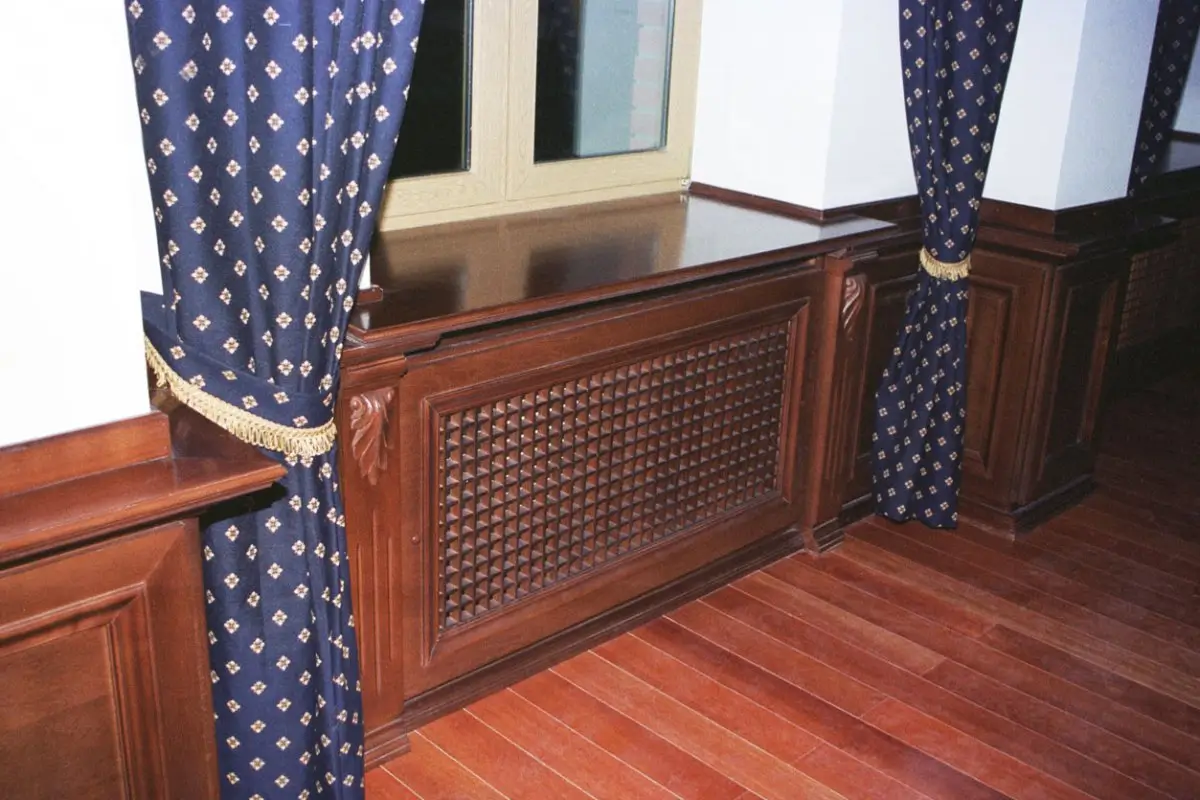 Фото готовых изделий можно увидеть в галерее. Причина популярности экранов заключается в том, что они не только закрывают недочеты батарей, но и сохраняют теплоотдачу. Но далеко не все деревянные экраны на радиаторы, сделанные на заказ, удовлетворят пользователя. Давайте разберемся, в чем причина.
